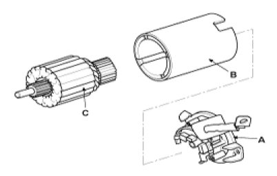 4. Remove the brush holder assembly (A), yoke (b) and armature (C).