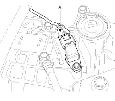 7. Remove the transaxle oil cooler hoses(A) releasing the clamps.