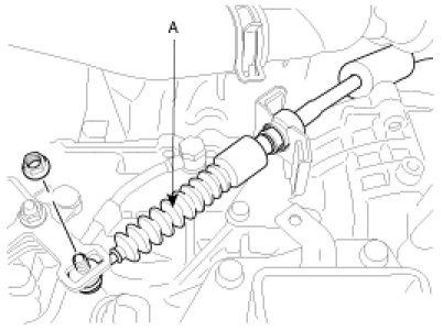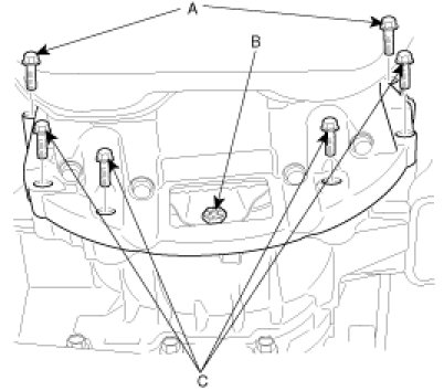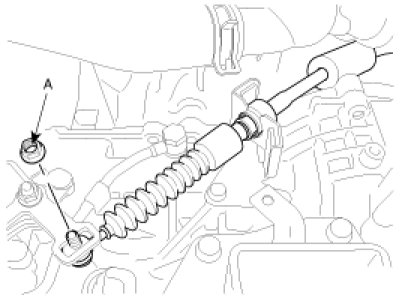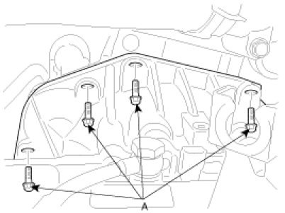 19. Lowering the vehicle down, remove the transaxle upper mounting bolts(A).