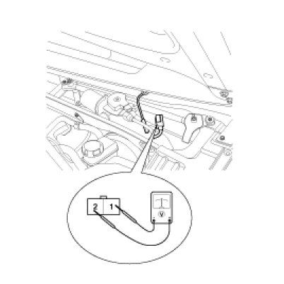 4. Start the engine and the windshield deicer switch ON, then measure the voltage between the terminals of harness side deicer connector.