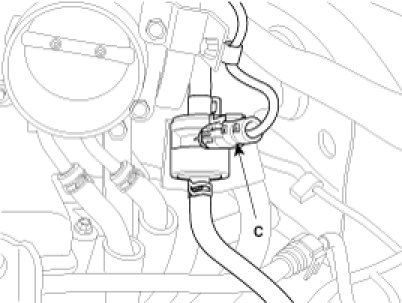 (5) Disconnect the MAPS(Manifold Absolute Pressure Sensor) connector(A), the ETC(Electronic Throttle Control) connector(B) and the PCSV(Purge Control Solenoid Valve) connector(C).