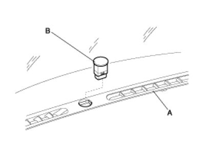 2. Using a suitable tool that will not damage the sensor, carsh pad, or windshield remove the photo sensor (B) from the center of defrost nozzle (A).