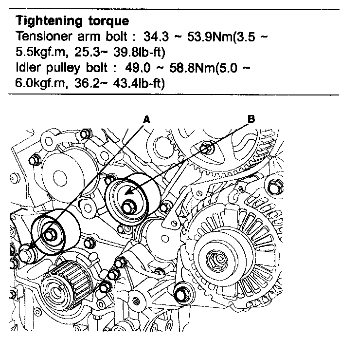 Crankshaft pulley bolt 166.7 - 176.5 Nm (17.0 - 18.0 kgf-m, 123.0 - 130.2 lb-ft)