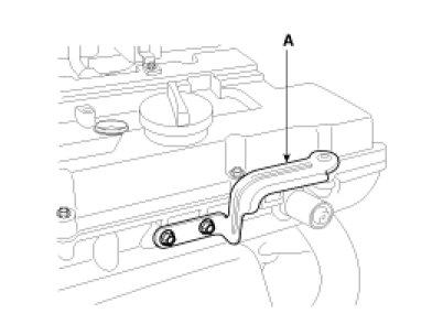 5. Install the idler pulley(A) and tighten the bolt(B) to the specified torque.