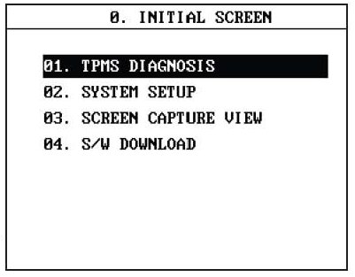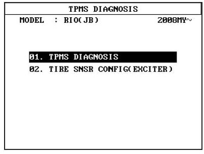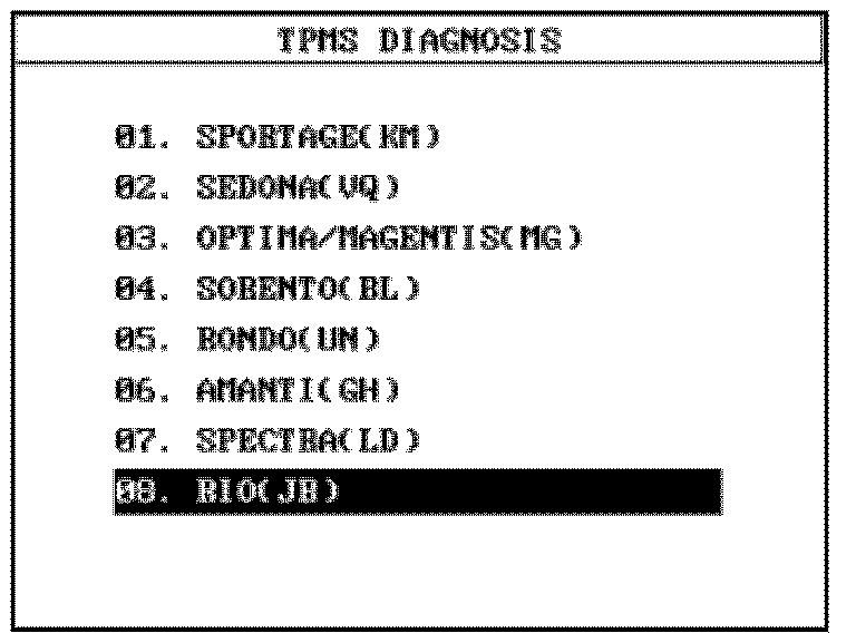 1. After selecting "01. TPMS DIAGNOSIS" from the Initial Screen, select the desired vehicle and press ENTER.