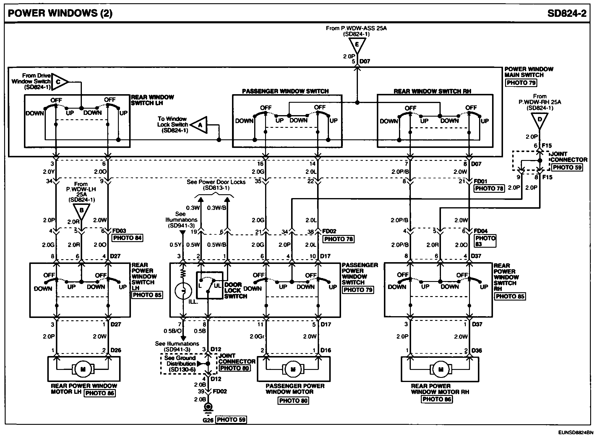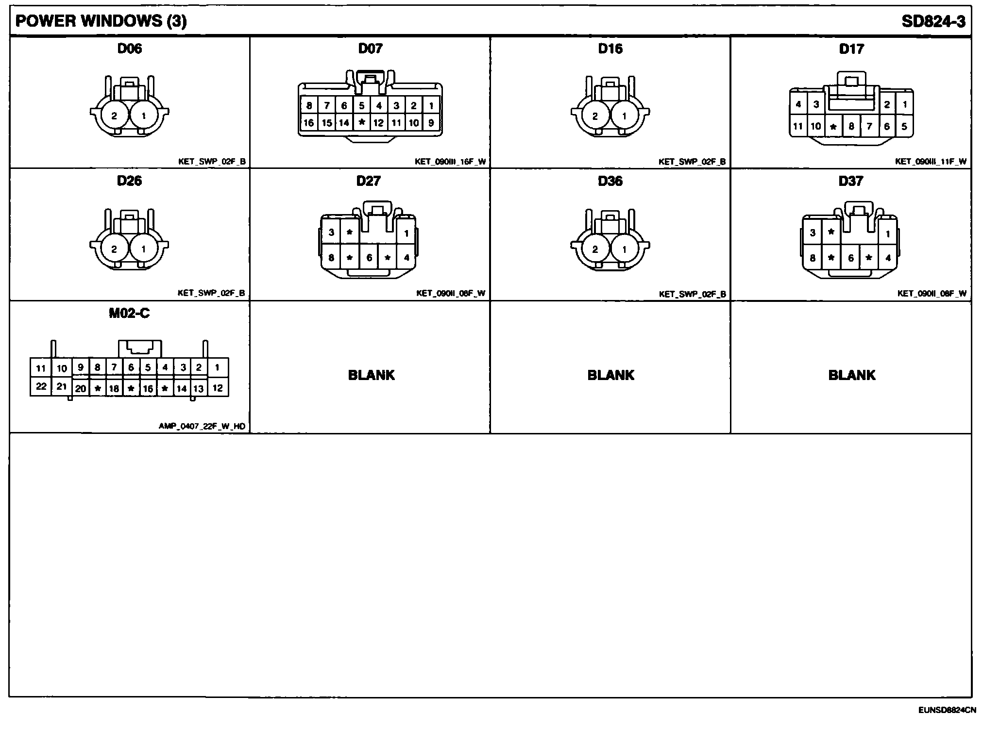 Power Windows Connector Pin Outs: