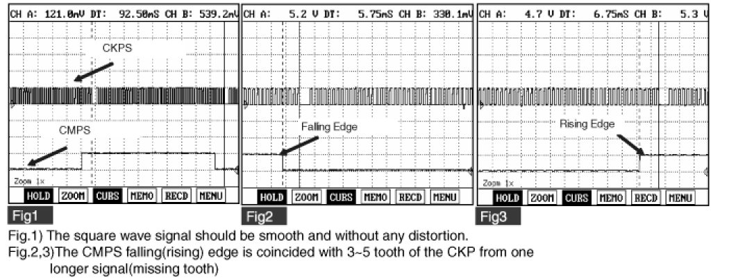 Camshaft Position Sensor (CMPS) is a hall sensor and detects the camshaft position by using a hall element. It is related with Crankshaft Position Sensor (CKPS) and detects the piston position of each cylinder which the CKPS can't detect. The CMPS are installed on engine head cover and uses a target wheel installed on the camshaft. This sensor has a hall-effect IC which output voltage changes when magnetic field is made on the IC with current flow.