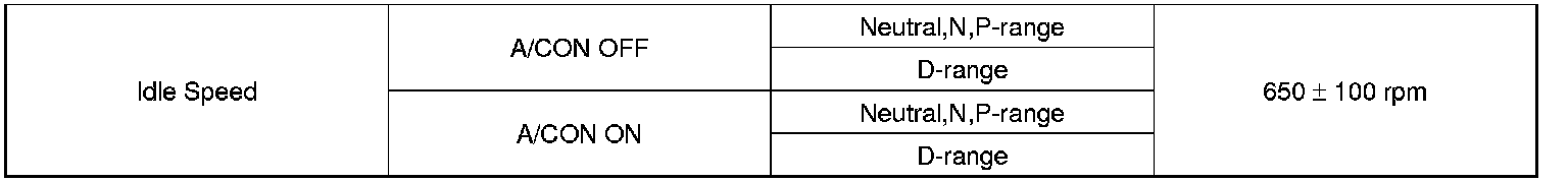 Idle Speed: Specifications