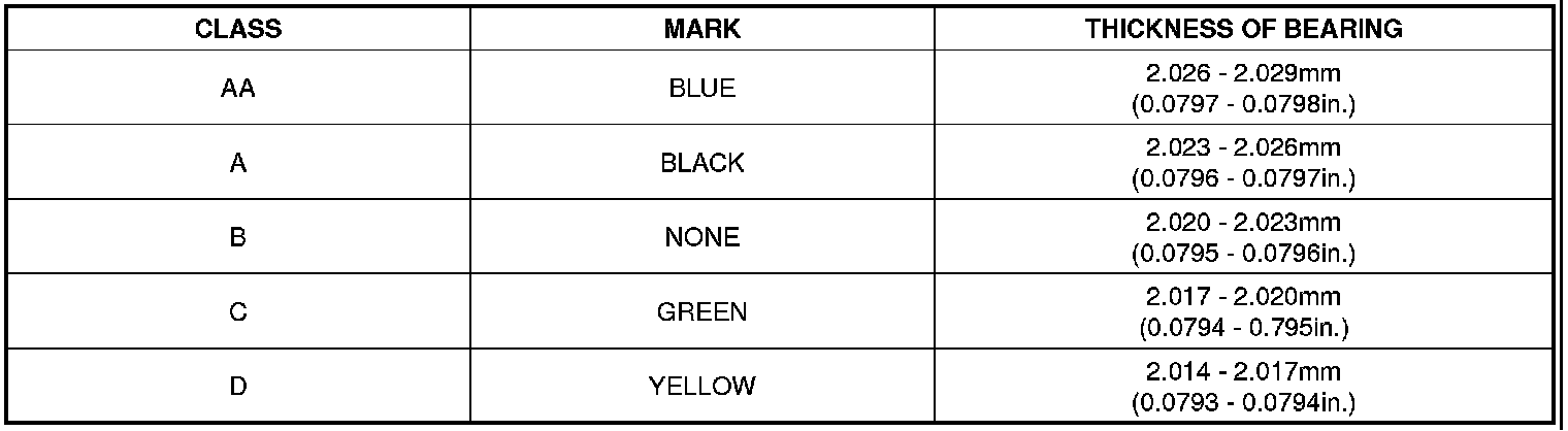 Main Bearing Size Codes