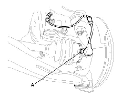 1. Remove the front wheel speed sensor mounting bolt (A).