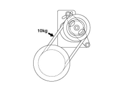1. Press the V belt, applying a pressure of 98N (10kg, 22lb) at the specified point and measure the deflection to confirm that it is within the standard value.