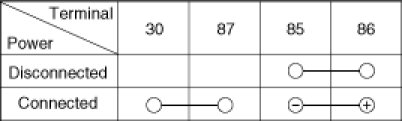 2. There should be continuity between the No.30 and No.87A terminals when power is disconnected.