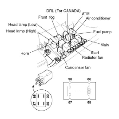 1. There should be continuity between the No.30 and No.87 terminals when power and ground are connected to the No.85 and No.86 terminals.