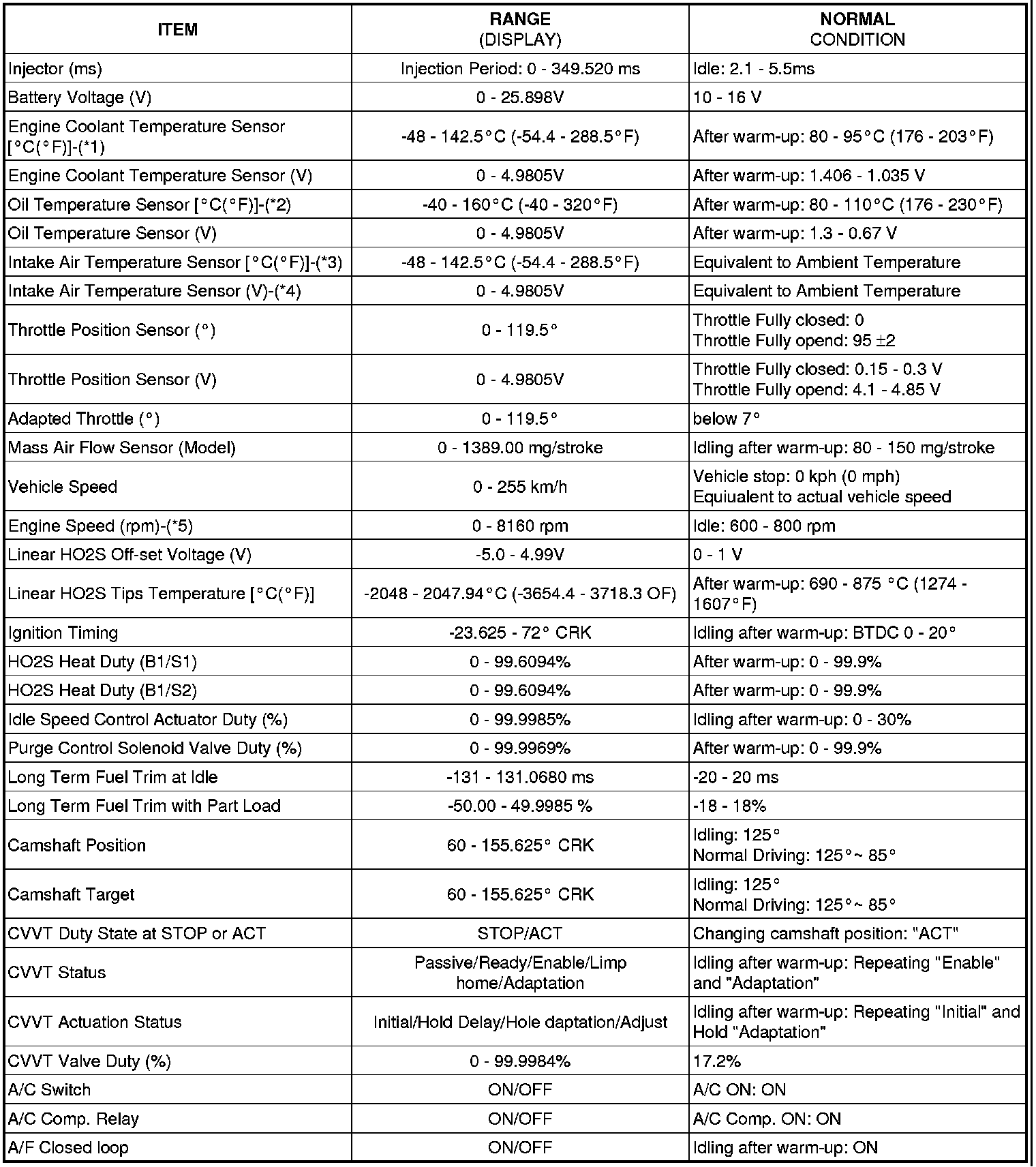 - (*3) If the value is lower than -46°C (114.8°F) or higher than 142°C (287.6°F), sensor circuit is open or shorted.