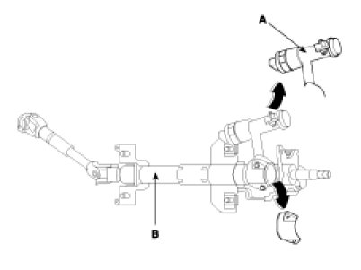 3. Disassembly the key lock assembly (A) from the steering column and shaft assembly (B).
