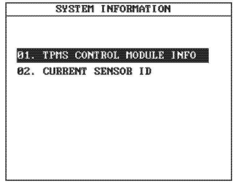 TPMS CONTROL MODULE INFO displays ECU configuration data.
