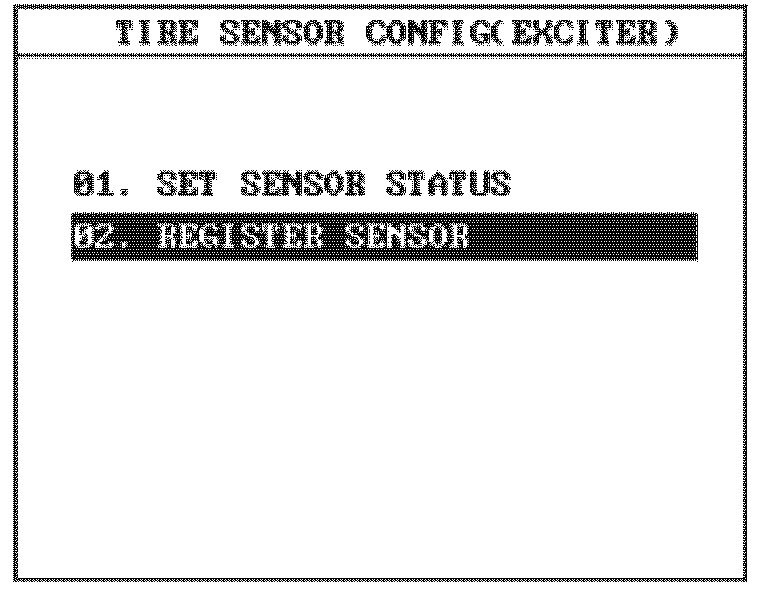 1. Select 02 REGISTER SENSOR from the TIRE SNSR CONFIG (EXCITER) menu.