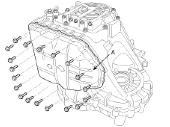 4. Loosen the drain plug(A) and drain the transaxle oil.