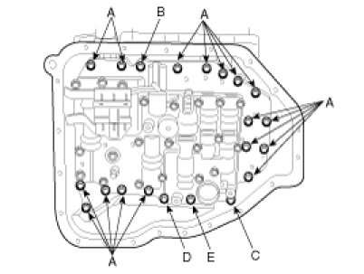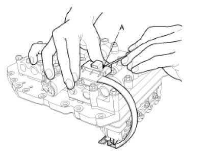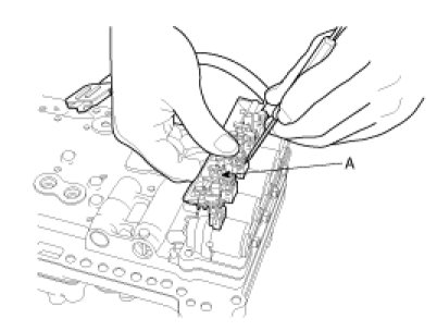 8. Disconnect the oil temperature sensor connector(A) from the valve body.