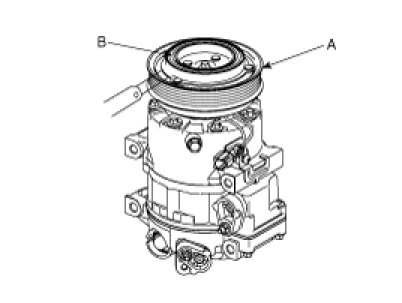 2. Check the pulley (B) bearing play and drag by rotating the pulley by hand. Replace the clutch set with a new one if it is noisy or has excessive play/drag.