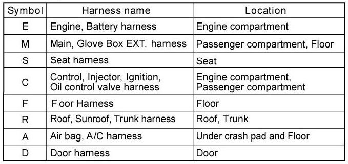 - Electrical wiring connectors are classified according to the wiring parts in the Harness layouts.