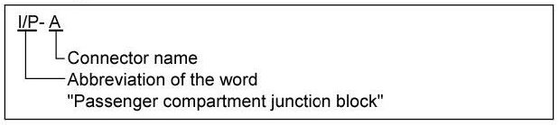 A junction block identification symbol consists of a wiring harness location classification symbol corresponding to a wiring harness location and number corresponding to the connector in the junction block.