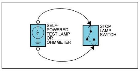 Use a self-powered test lamp or an ohmmeter to check for continuity. The ohmmeter shows how much resistance there is between two points along a circuit. Low resistance means good continuity.