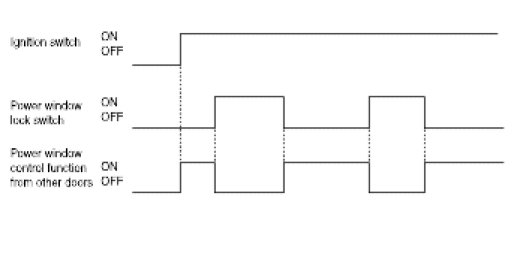 When the driver's power window lock switch is ON, each safety window ECU receives the power window lock command to prohibit the operation by the passenger side doors except the driver's door.