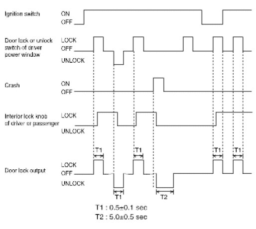 5. If the driver side or passenger side door is locked within 0.5 second after driver side or passenger side door is closed, it outputs unlock command for 1 second.