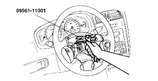 4. Mark the steering column shaft and steering wheel for fitting positions used for re-installation using the special tool. Remove the steering wheel.