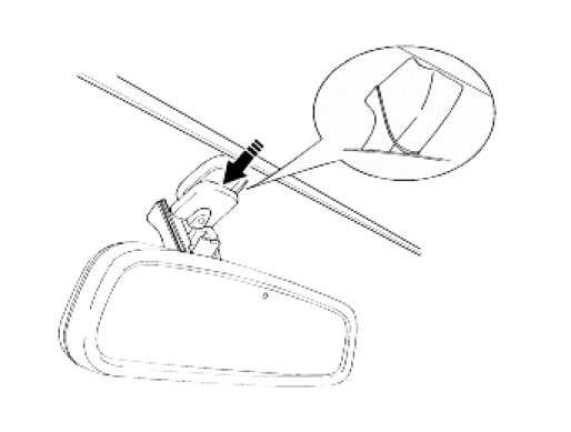 (4) Slide downward (an arrow direction) to remove inside rearview mirror from inside rearview mirror base.