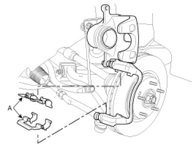 1. Install the pad retainers (A) to the caliper.