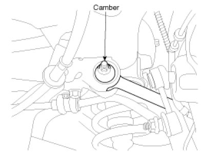 Camber is pre-set at the factory and doesn't need to be adjusted. If the camber is not within the standard value, replace the bent or damaged parts.