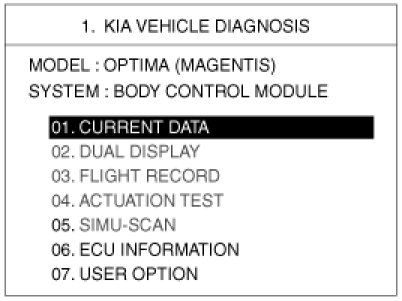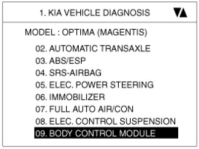 2. To diagnose the BCM function, select the menu of model and body control module.