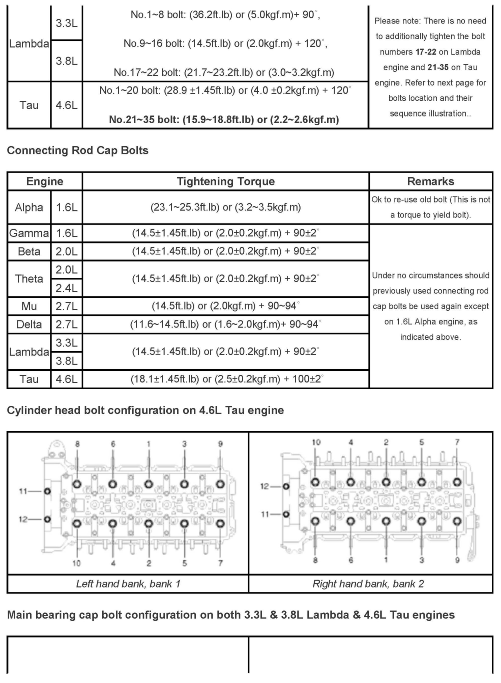 Torque Specifications on "Torque to Yield" Engine Component Bolts (Engine - 050)