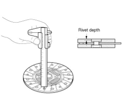 4. Measure the depth from a clutch lining surface to a rivet. If the measured value is less than the specification below, replace it.