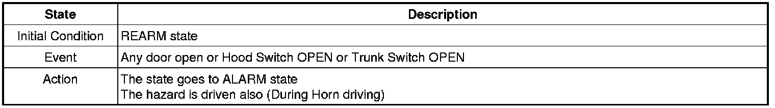 When the system is set off, the alarm (horn) sounds and the hazard lamp flash for about two minutes or until the system is disarmed by unlocking the transmitter.