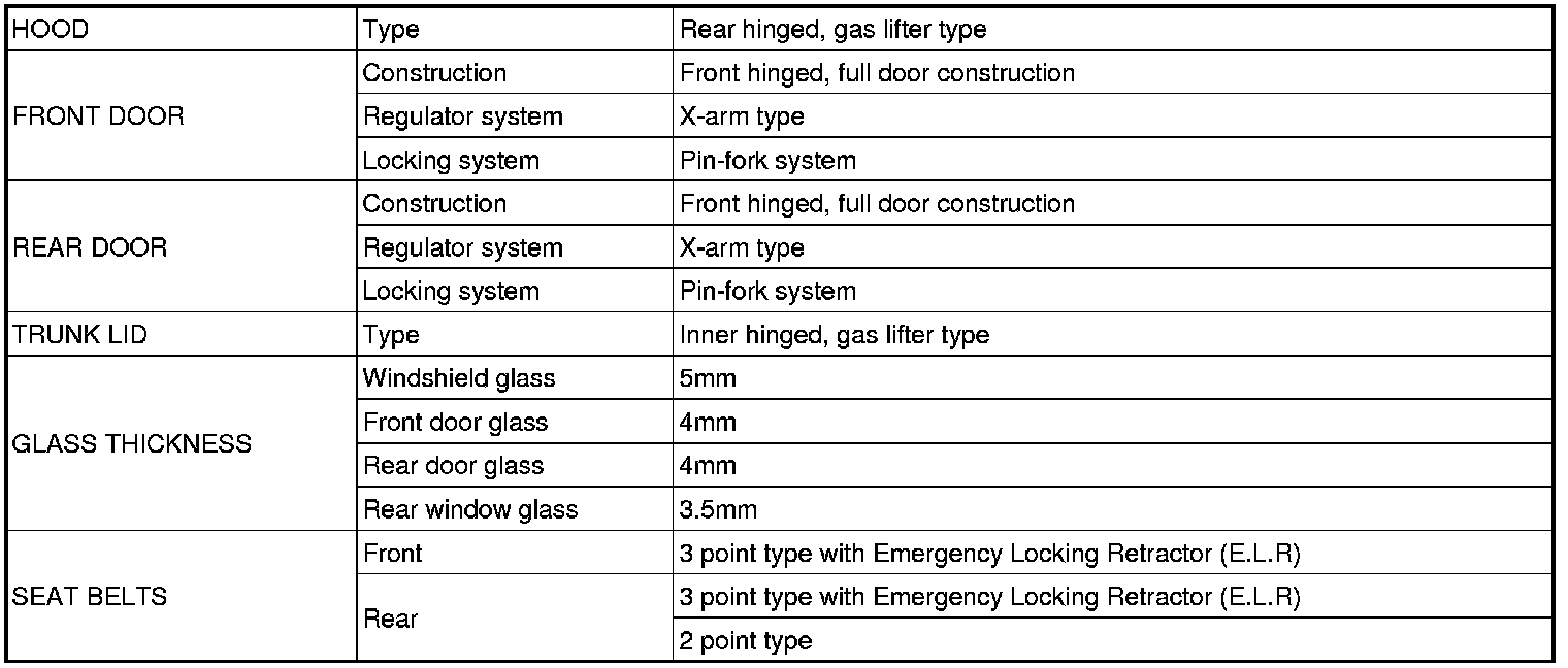 Body and Frame: Specifications