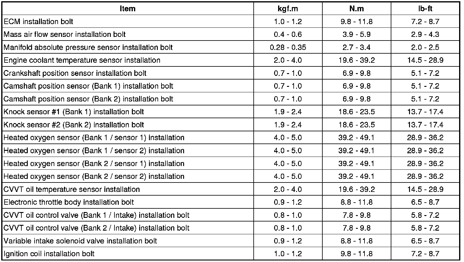 Tightening Torques