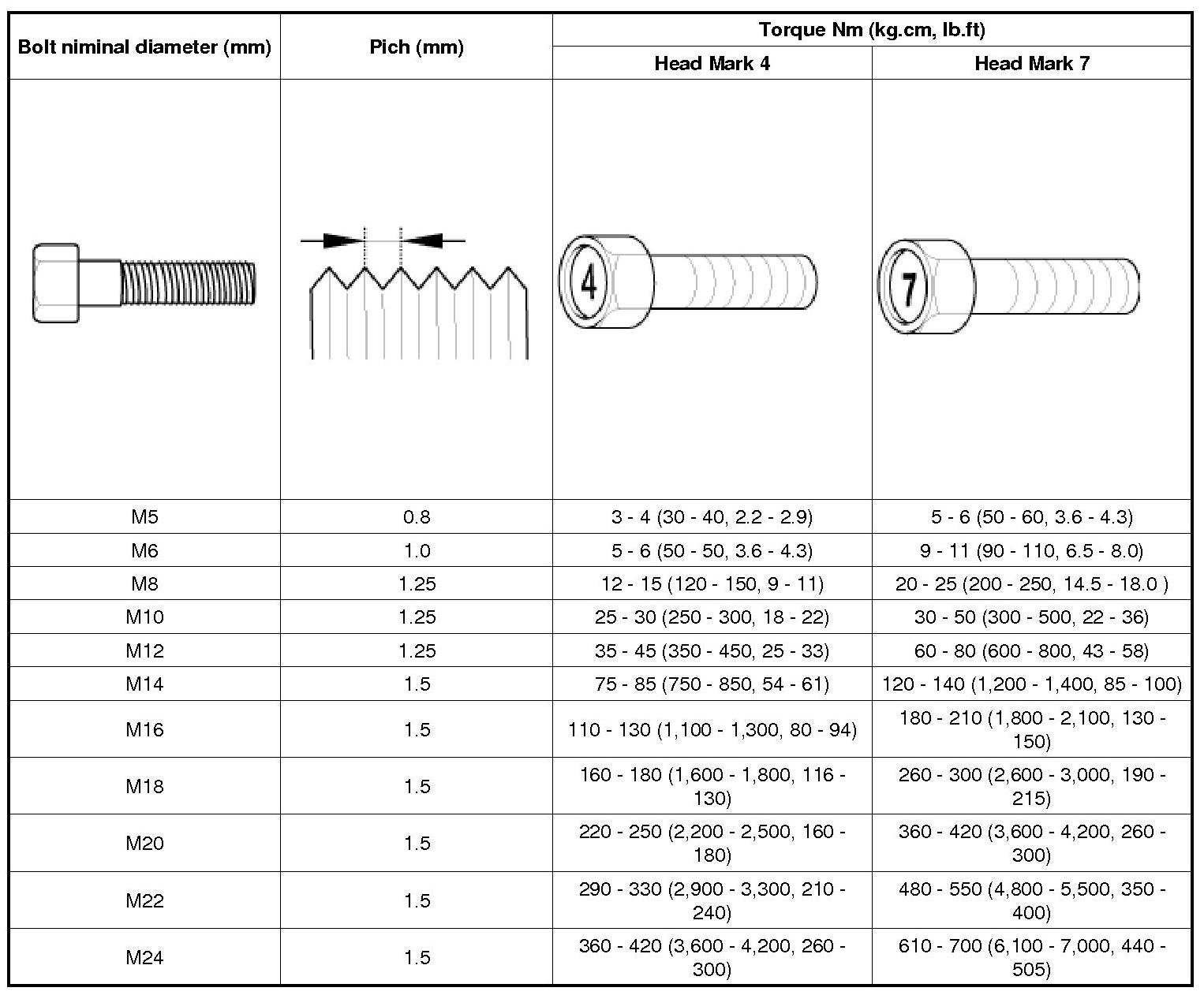 TIGHTENING TORQUE TABLE OF STANDARD PARTS