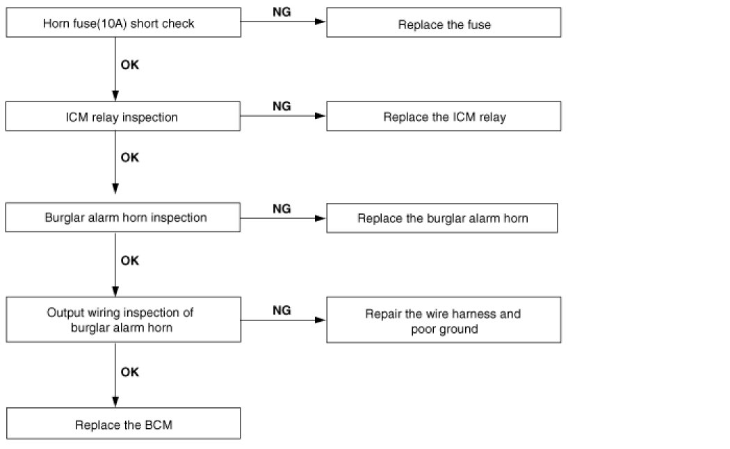 3. When door is opened in ARM mode, burglar horn does not work (If tailgate and hood is opened, alarm works)