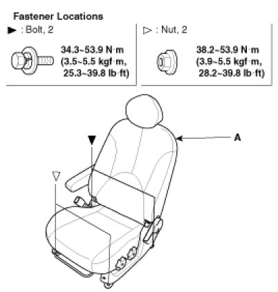 2. After loosening the seat assembly mounting bolt and nut, remove the seat assembly (A).