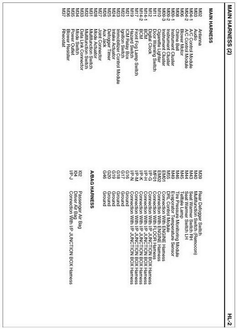 Main Harness Index: