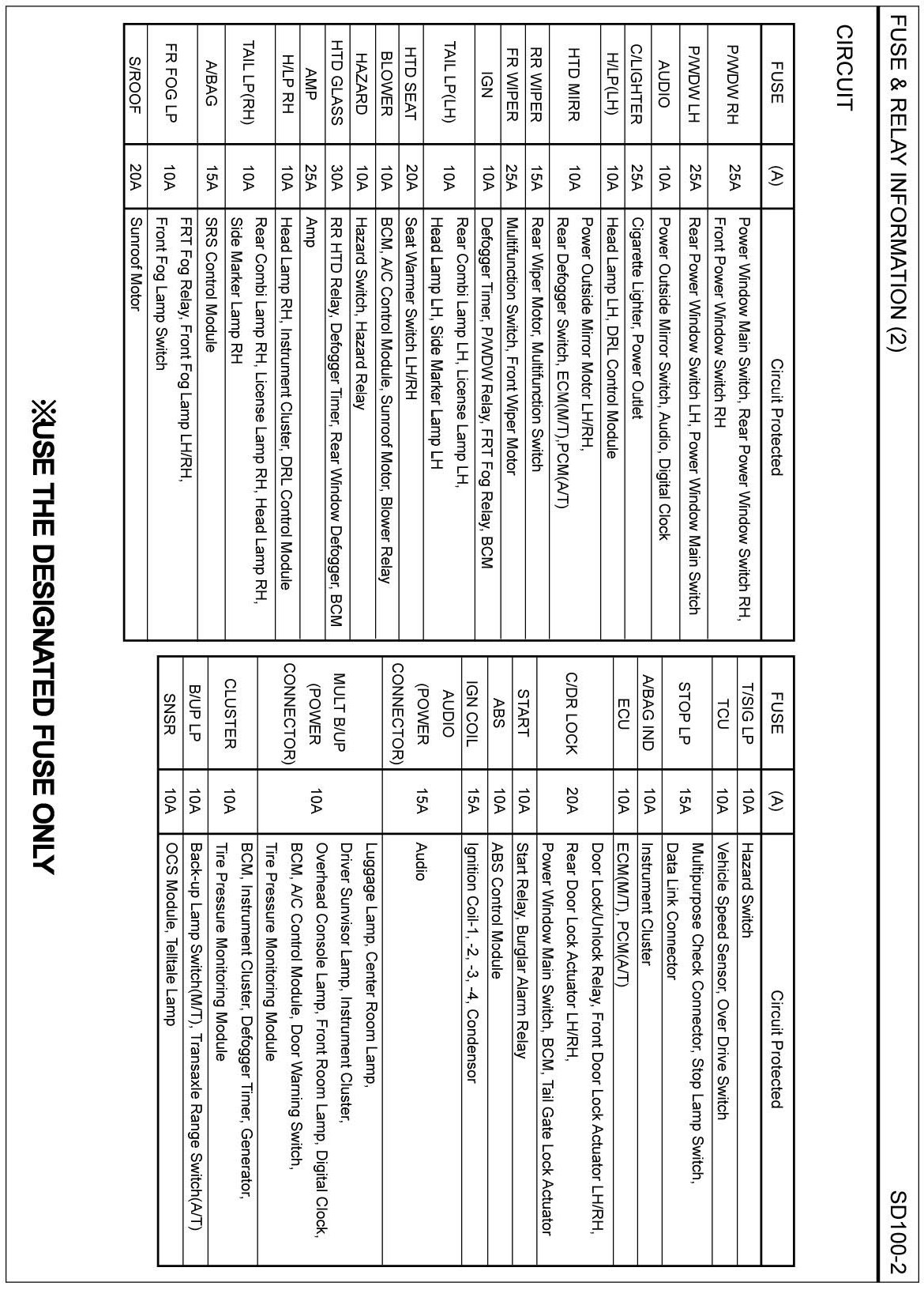 FUSE AND RELAY INFORMATION