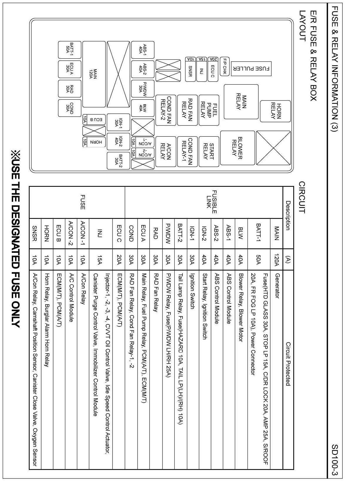 E/R Fuse & Relay Box Layout:
