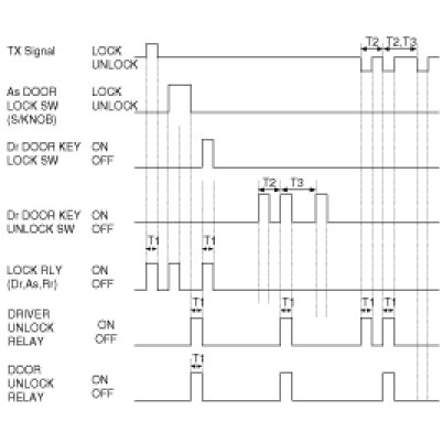 If the TUnlock signal is received within T2, the Unlock output shall be ON to all doors for T1. (After the driver door Key Unlock switch is turn to ON from OFF, if the same condition is satisfied within T2, then the Unlock output shall be ON to all doors.)