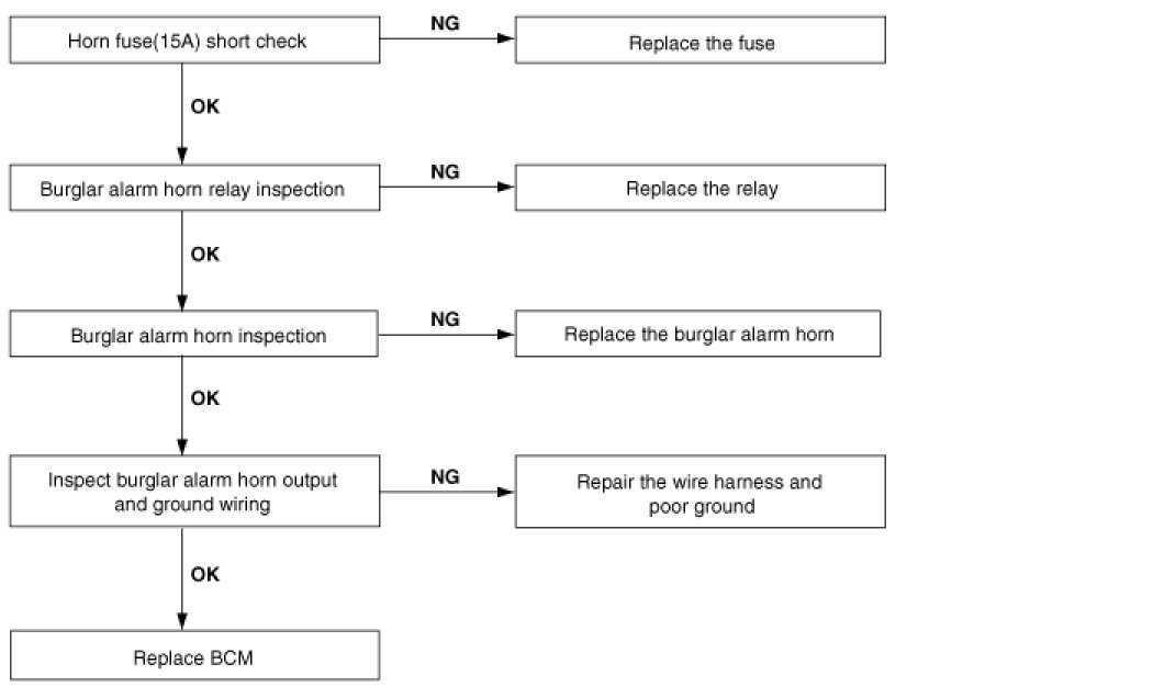 4. When tailgate is opened in ARM mode, burglar horn does not work.
