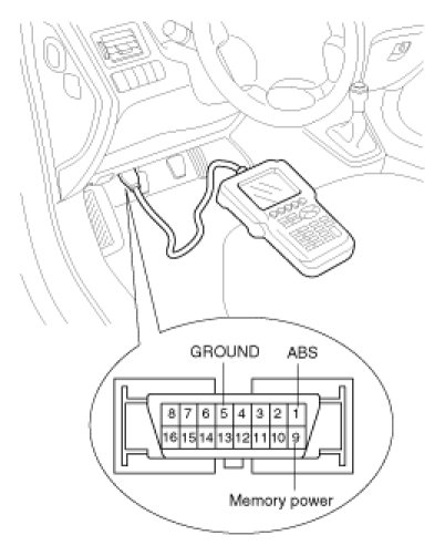 2. Connector the scan tool to the 16P data link connector located the driver's side kick panel.