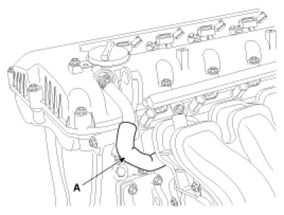 12. Remove the PCV hose (A).