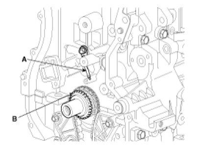 1. Install the crankshaft chain sprocket (B).